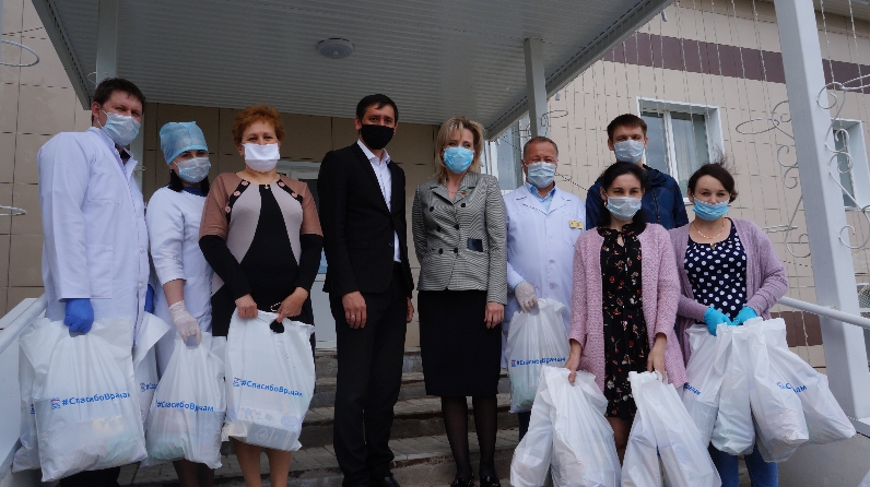 18 мая 2020г. ГАУЗ «Мамадышская ЦРБ» посетила представитель фракции «Единой России» Людмила Рыбакова, заместитель главы Мамадышского муниципального района Мусса Хузазянов. Депутат государственного совета Людмила Рыбакова передала медикам, которые сегодня находятся на передовой по борьбе с короновирусной инфекцией сорок продуктовых пакетов.