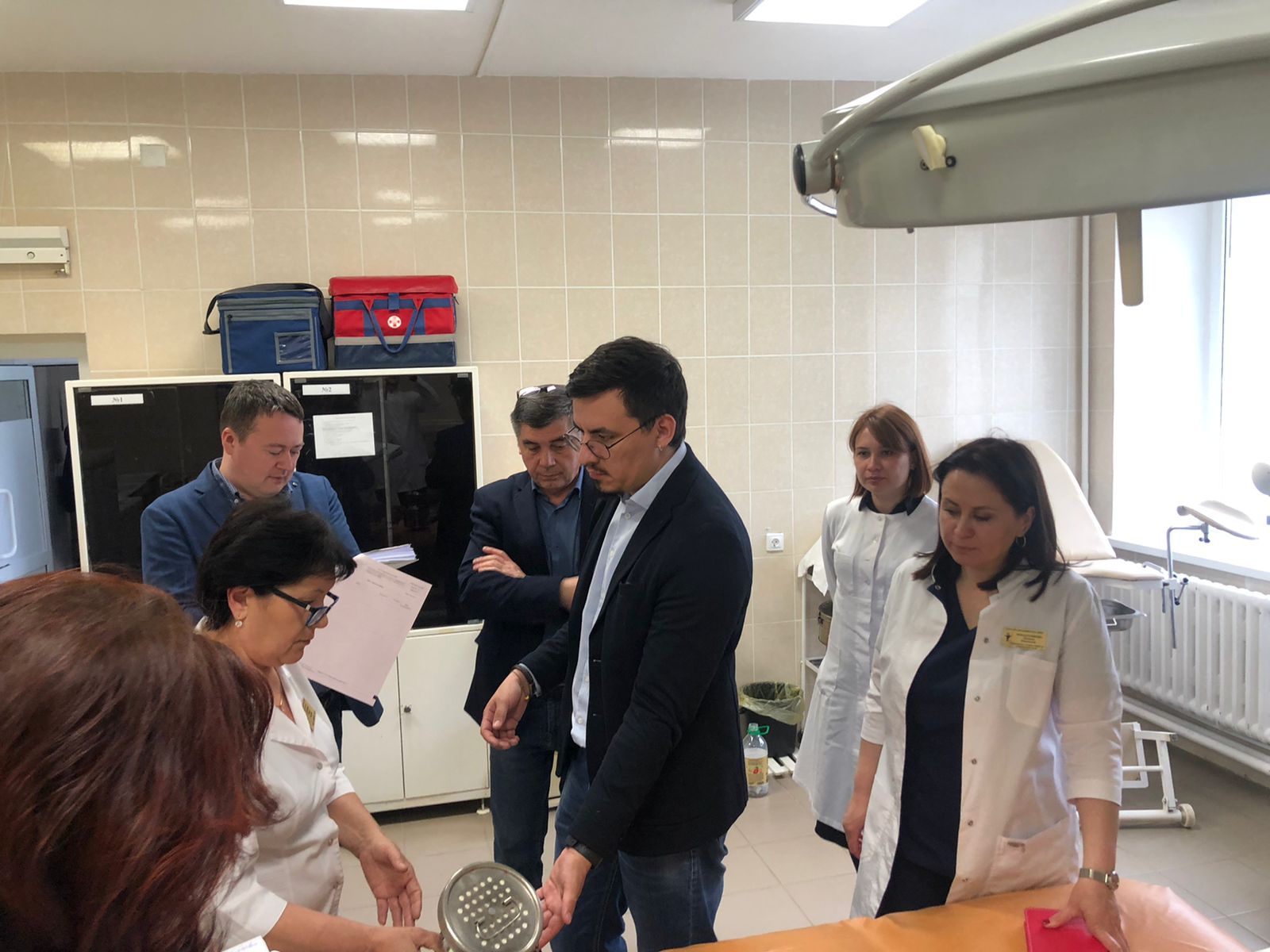 Делегация больницы скорой медицинской помощи г. Набережные Челны посетила ГАУЗ «Мамадышская ЦРБ» в рамках обмена опытом. Курация комиссии по внутреннему контролю качества БСМП в лице Джумабаева Романа Адамбаевича – зам.главного врача по медицинской части, заместителя главного врача по клинико-экспертной работе Гареева Рината Фертовича, заведующей кардиологического отделением, врача-кардиолога Станиченко Наили Саидахметовны, главной медицинской сестры Карауловой Евгении Олеговны проведена в рамках подготовки больницы к сертификации Росздравнадзора. Несомненно, опыт коллег БСМП очень актуален. В ходе обзорного знакомства с подразделениями, принципами работы - проведённые этапы работы коллектива Мамадышской ЦРБ высоко оценены опытными коллегами. Специалистами проведены консультации по внедряемым проектам, дальнейшей работе.