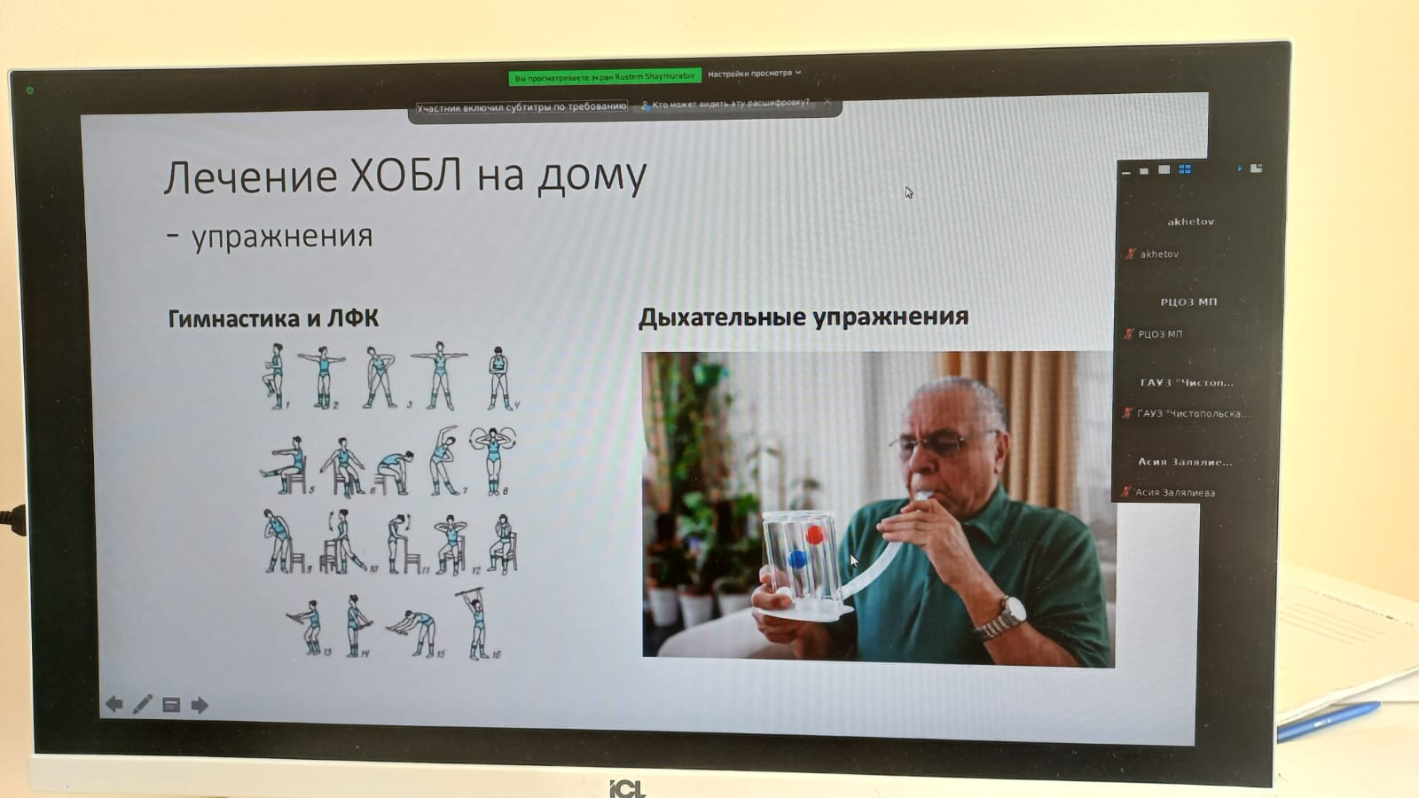 В время лекции Рустем Ильдарович еще раз напомнил пациентам, что данное заболевание несовместима с курением. Так же при лечении ХОБЛ, наряду с медикаментами, имеет огромное значение лечебная физическая культура и дыхательные упражнения.