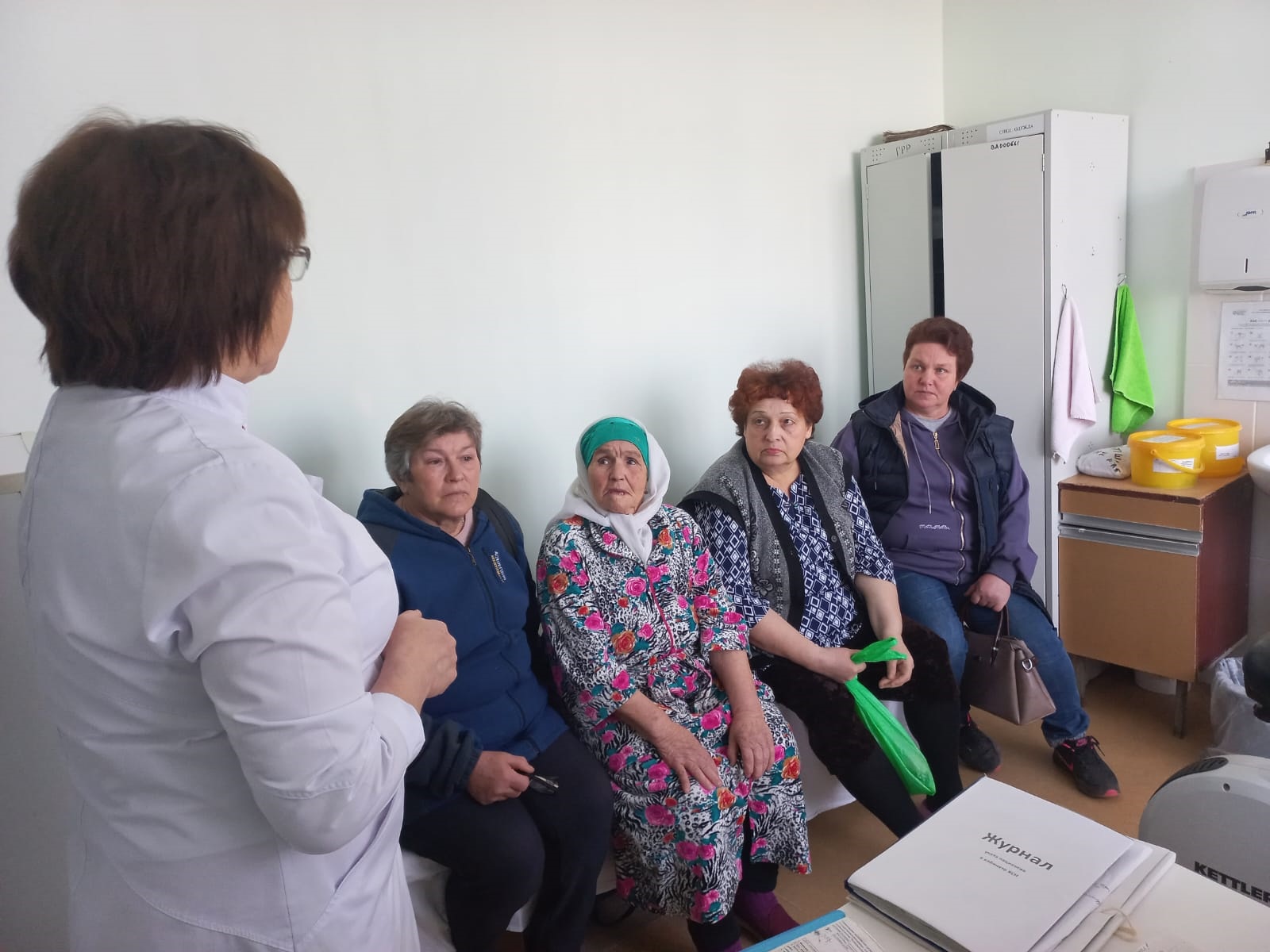 Сегодня, 17 апреля, врач – кардиолог поликлиники Гилаев Булат Марселевич и медицинская сестра кабинета ХСН Ситдикова Зульфия Гасимхановна провели занятие в школе здоровья для пациентов с хронической сердечной недостаточностью (ХСН).