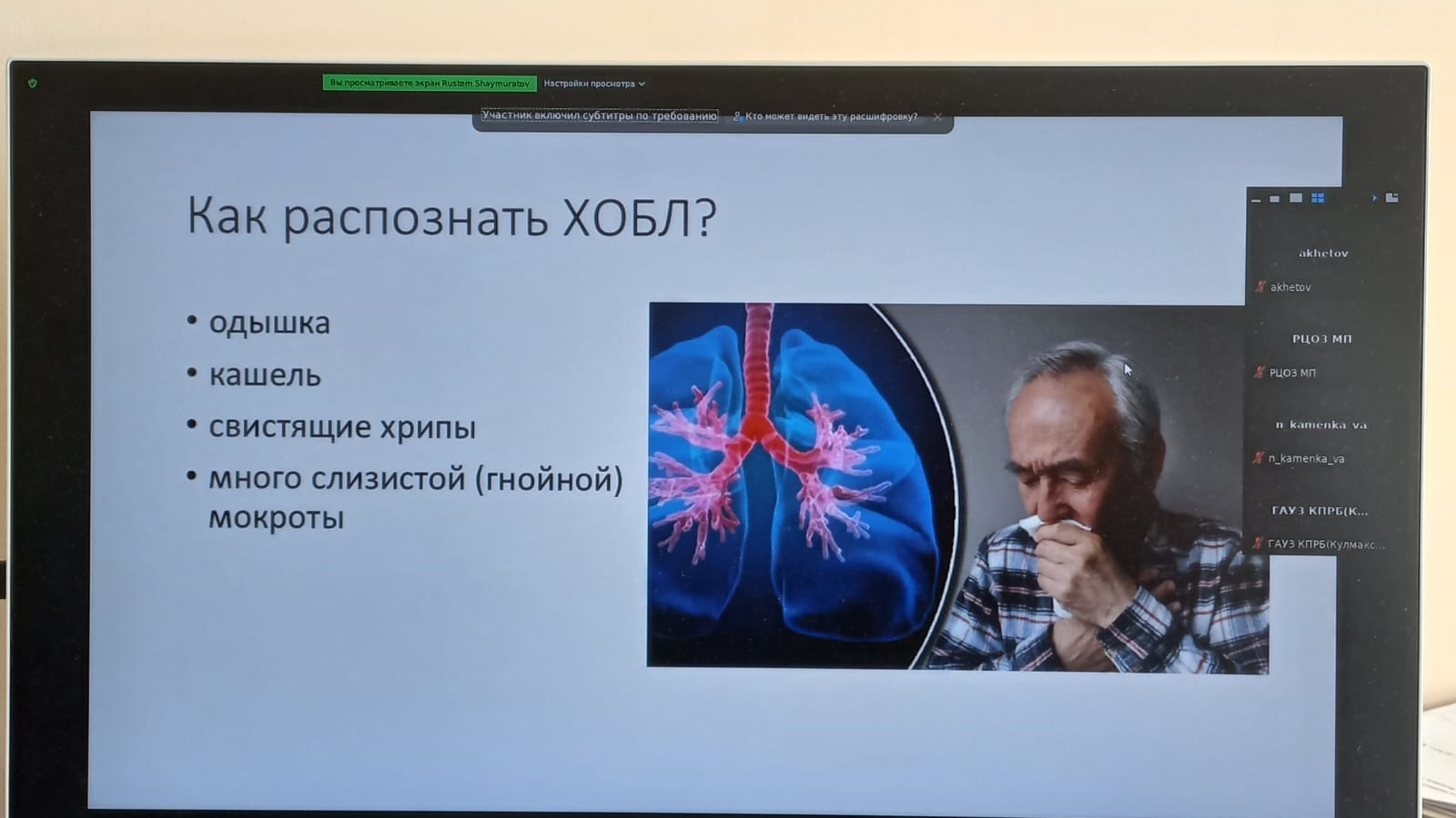 25 апреля прошло еще одно онлайн занятие в Школе здоровья для пациентов с хронической обструктивной болезнью легких (ХОБЛ). Занятие провел ассистент кафедры фтизиопульмонологии Казанского государственного медицинского университета, врач – пульмонолог, кандидат медицинских наук Рустем Шаймуратов.