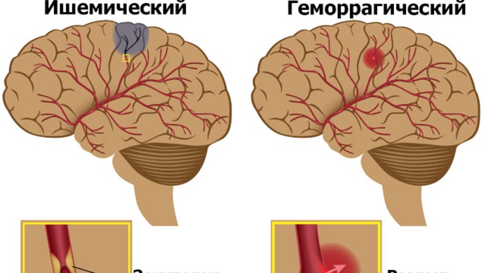Инсульт – тяжелое, часто внезапно возникшее и угрожающее жизни состояние, при котором нарушается кровоток в каком - либо отделе головного мозга. Различают 2 вида инсульта: ишемический и геморрагический. Геморрагический инсульт – это кровоизлияние в полость черепа. Самая частая причина разрыва сосуда – это высокое артериальное давление. Ишемический инсульт – это нарушение кровообращения головного мозга, впоследствии нарушения или полного прекращения поставки крови к отделу мозга. Чаще происходит при закупорке кровеносных сосудов тромбом.
