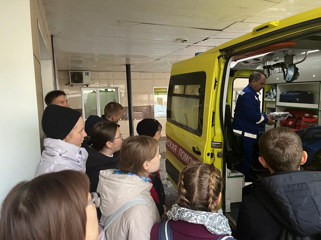 Четырнадцать девятиклассников начали экскурсию со знакомством работы медицинских работников с кареты медицинской помощи и работой отделения скорой медицинской помощи. Старший фельдшер отделения Сергей Митрофанов практически рассказал, как определять неотложные состояния, оказывать первую неотложную помощь, правильно транспортировать пациента, ознакомил с устройством и оборудованием машины скорой неотложной помощи. Далее в интересной форме учащиеся узнали тактику обследования и оказания помощи в приёмном отделении больницы. Под руководством главной медицинской сестры Галины Штукиной ребята подробно ознакомились с работой приемного отделения, диагностического отделения, внимательно изучая деятельность рентген кабинета, кабинета компьютерной томографии, ультразвуковой диагностики, эндоскопического отделения. С огромным интересом задавали вопросы о работе оборудования, технологии проведения исследований, возможностей диагностики для пациентов. Не менее интересно было узнать, как проходит лечение пациентов в стационаре: в педиатрическом и хирургическом отделениях ознакомились с работой отделений, процедурных кабинетов, буфетных. Поразила стерильность и принципы работы стерилизационного отделения, участковый принцип поликлиники.
