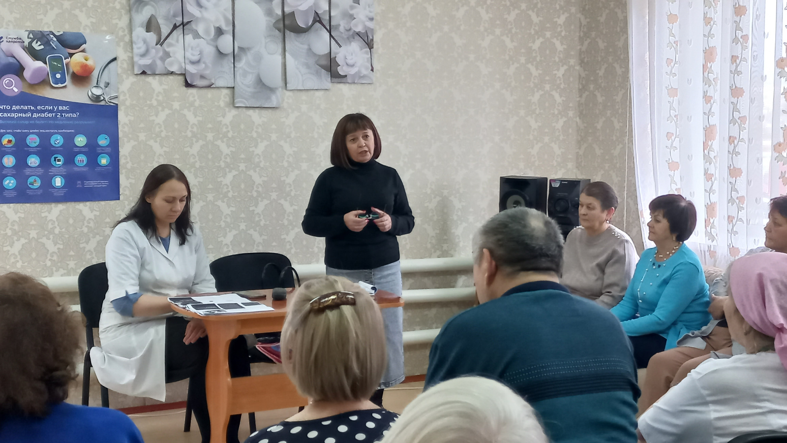 Эльвира Мингазутдиновна провела занятие, приуроченное к Всемирному дню диабета. Подробно рассказала о факторах риска, причинах возникновения данного хронического заболевания и про принципы питания при сахарном диабете. Объяснила слушателям, что сахарный диабет опасен своими осложнениями, отметила важность постоянных наблюдений у лечащего врача для своевременного выявления осложнений, призвала присутствующих бережно относиться к своему здоровью.