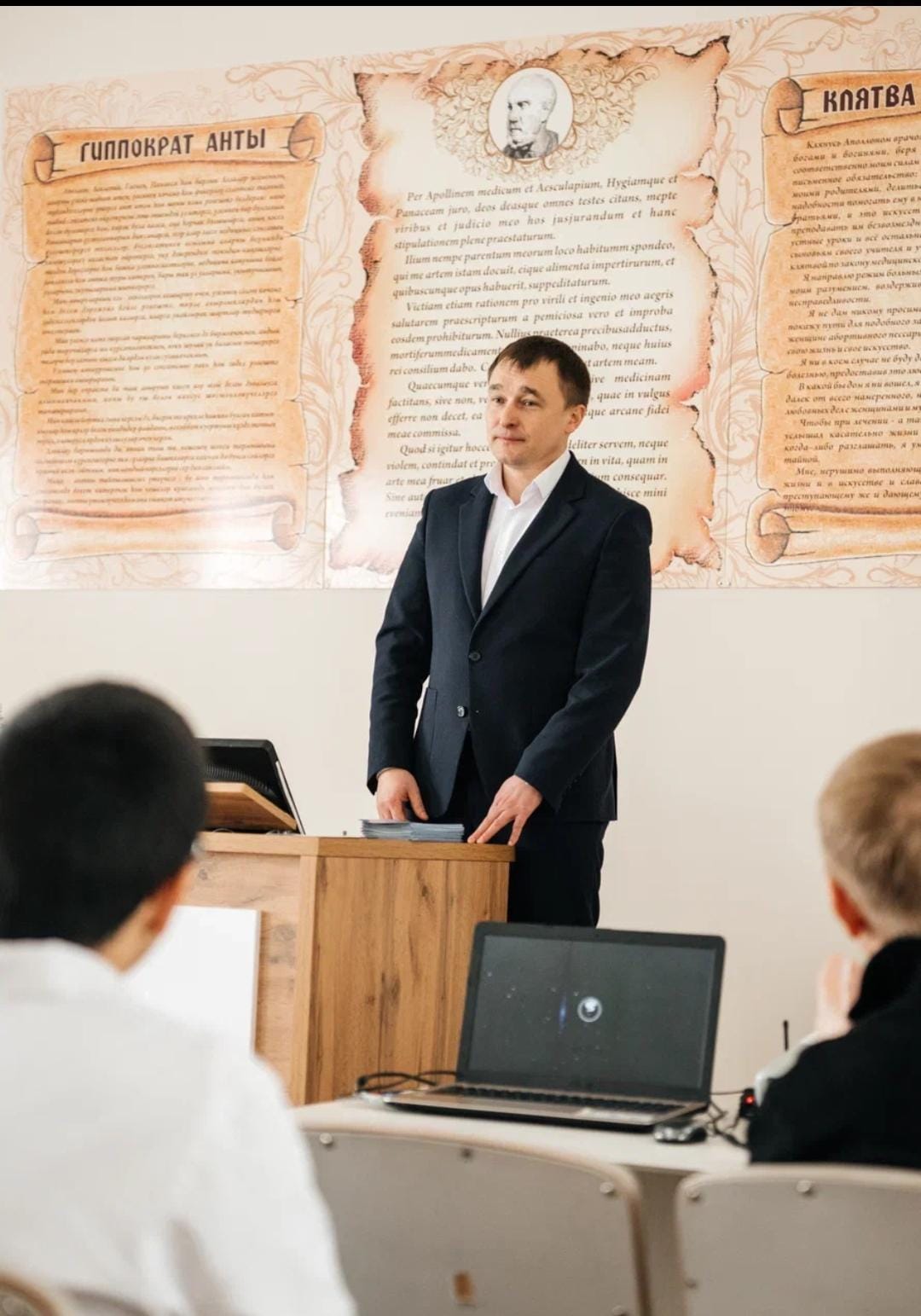 Врач-хирург хирургического отделения Наиль Гилемханов, молодой специалист – выпускник КГМУ рассказал учащимся о системе обучения, о процедуре аккредитации и возможностях трудоустройства молодого врача. «Красной нитью» прозвучало об образовании всю жизнь, как непременное условие медицинского работника. Очень важно ответственно относиться к учебе, ведь учеба в медицинском ВУЗе – это упорный труд. Очень интересно рассказал о своем становлении в профессии, ведь он является одним из представителей медицинской династии: его бабушка -медицинская сестра, отец- врач- хирург, долгие годы проработавший заведующим хирургическим отделением Мамадышской больницы, ныне врач -хирург 18 больницы г.Казань. Главной мыслью звучал постулат: " Медицина- это рост и развитие". Много ценных советов узнали школьники о всех нюансах работы молодого специалиста, возможностях обучения и профессионального роста.