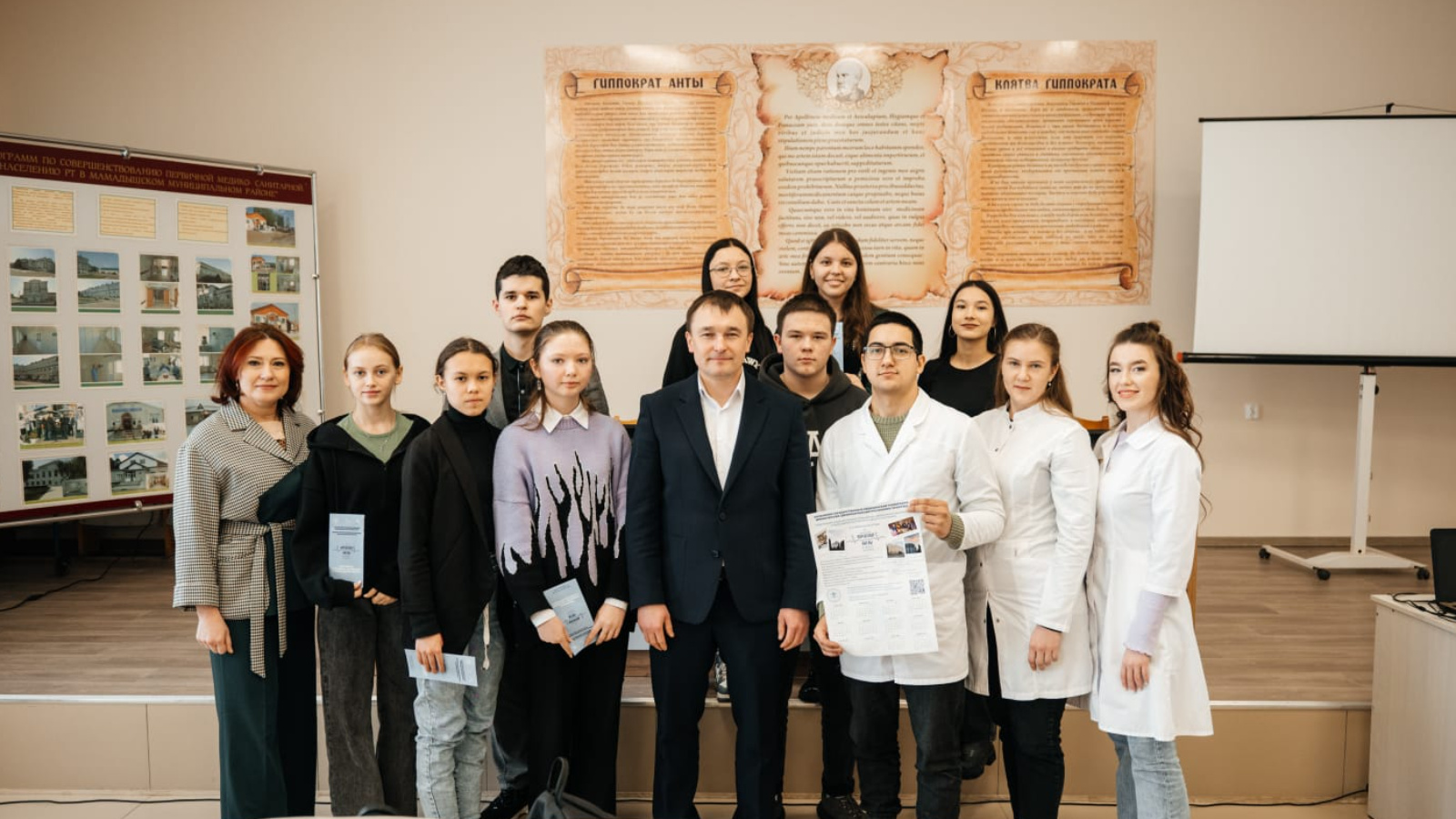 В рамках данного мероприятия была проведена встреча между выпускниками старших классов общеобразовательных школ Мамадышского муниципального района, студентами-выпускниками КГМУ, уроженцами района и работниками здравоохранения ЦРБ, с участием студентов Казанского государственного медицинского университета.