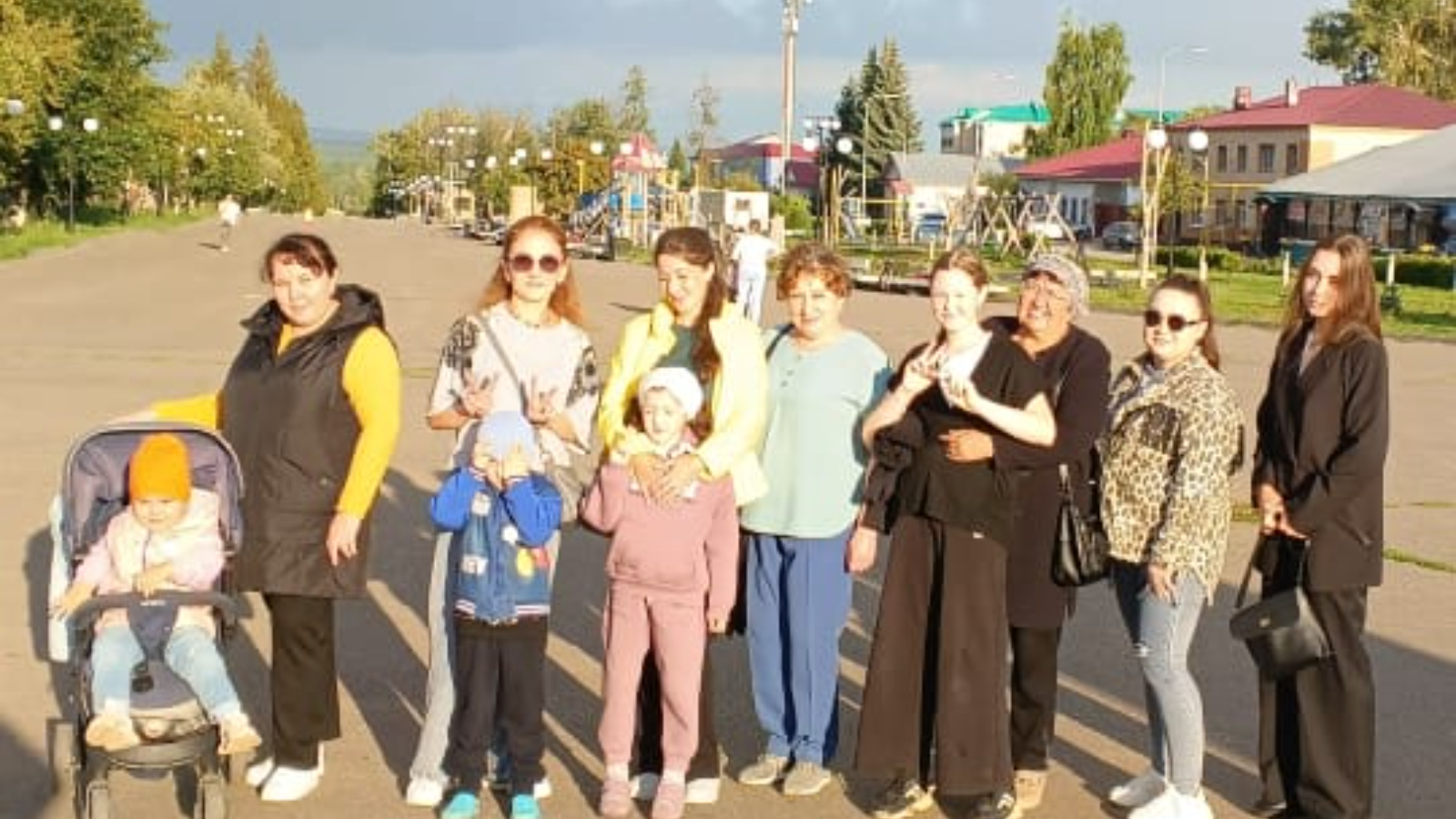Компания медицинских работников и молодых мам, беседуя, неспешно прогулялась по улице Советской, прогулку завершили памятным фото.