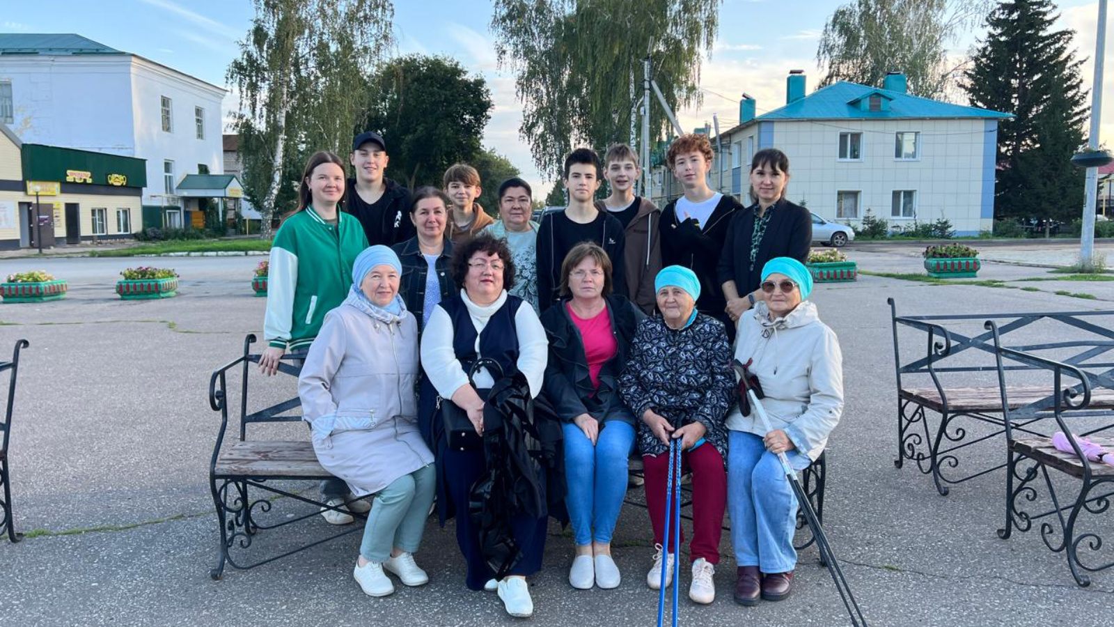 Медицинские работники с жителями города, неспешно беседуя прогулялись по улице Советской, а в конце прогулки сфотографировались на память.