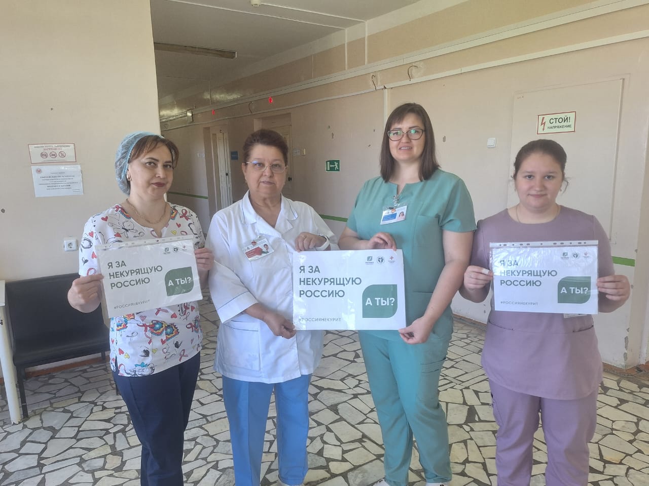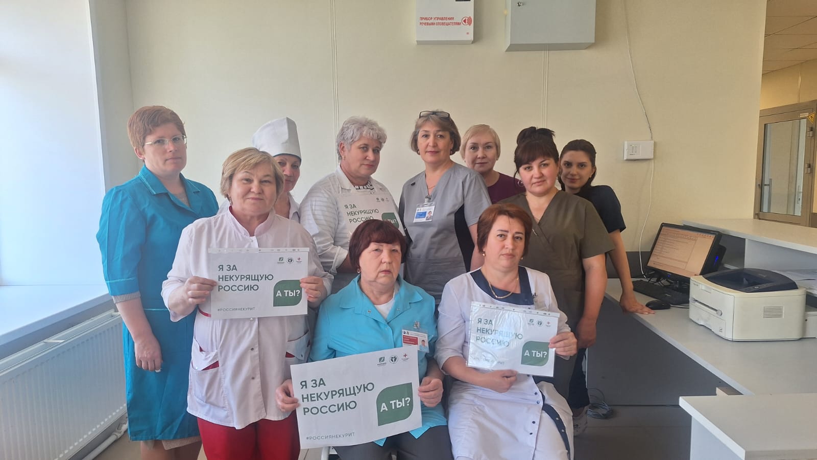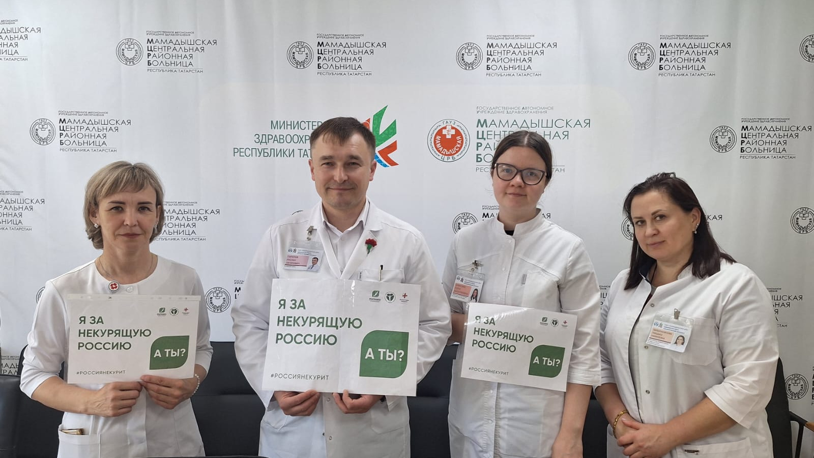 Главный врач Руслан Загирович Гарипов и сотрудники ГАУЗ «Мамадышская ЦРБ» также присоединились к общероссийской инициативе по борьбе с употреблением табачных изделий.