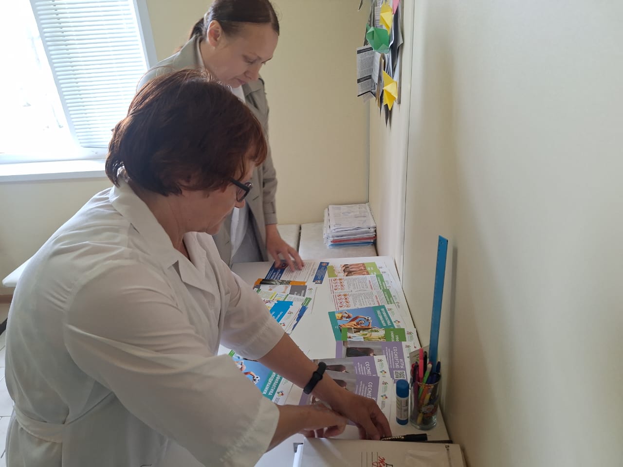 Медицинская сестра кабинета профилактики Любовь Александровна предоставила профилактические материалы медицинскому работнику лагеря, провела консультирование по ведению профилактической работы с детьми.