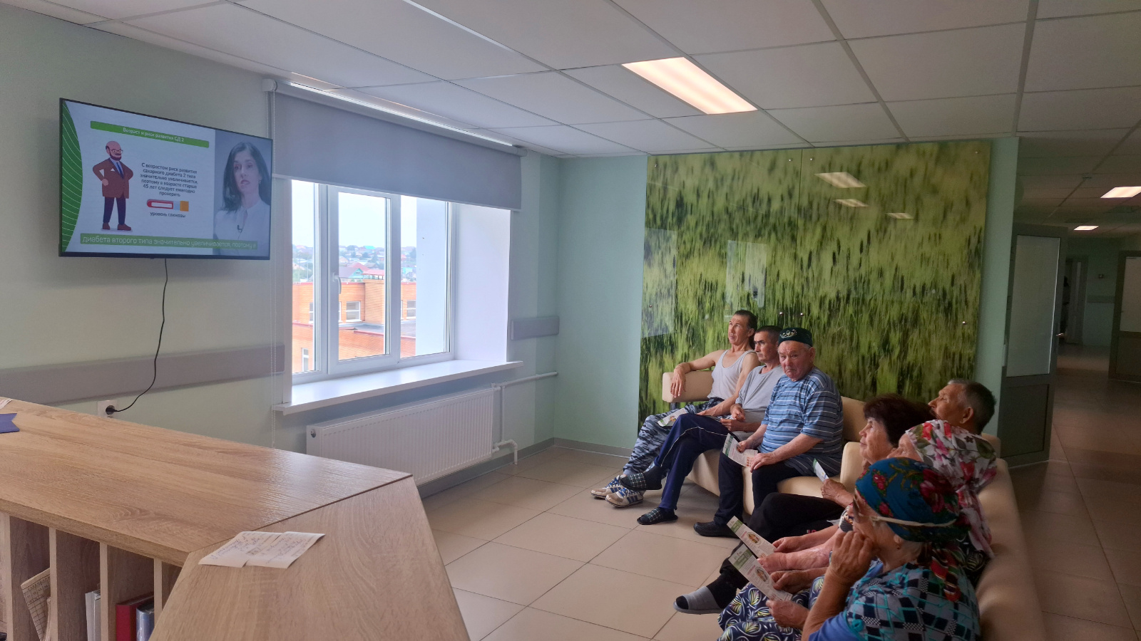 Медицинская сестра кабинета профилактики Любовь Ибрагимова продемонстрировала информативные видеоролики пациентам на темы «Первичная профилактика сахарного диабета», «Тарелка здоровья» и «Вторичная профилактика сахарного диабета 2 типа. Диспансерное наблюдение». Также пациентам организовала раздачу буклетов и листовок с полезной информацией о правильном питании и профилактике осложнений сахарного диабета.