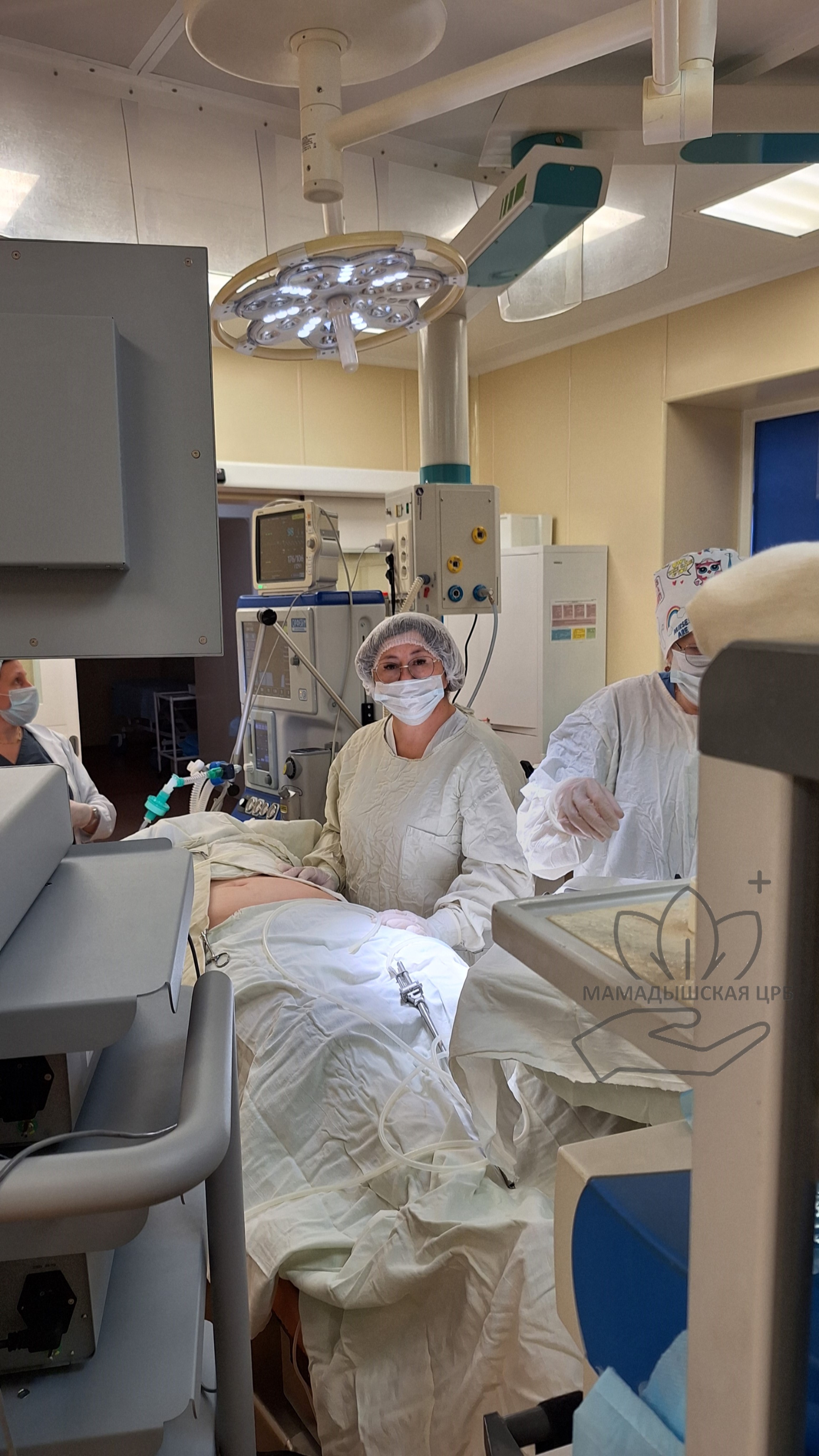 Первой операцией с применением нового аппарата стало плановое эндоскопическое удаление кисты яичника. В ходе вмешательства также использовались новейшая операционная стойка и аппарат для электрокоагуляции. Операция прошла успешно благодаря слаженной работе всей операционной бригады.