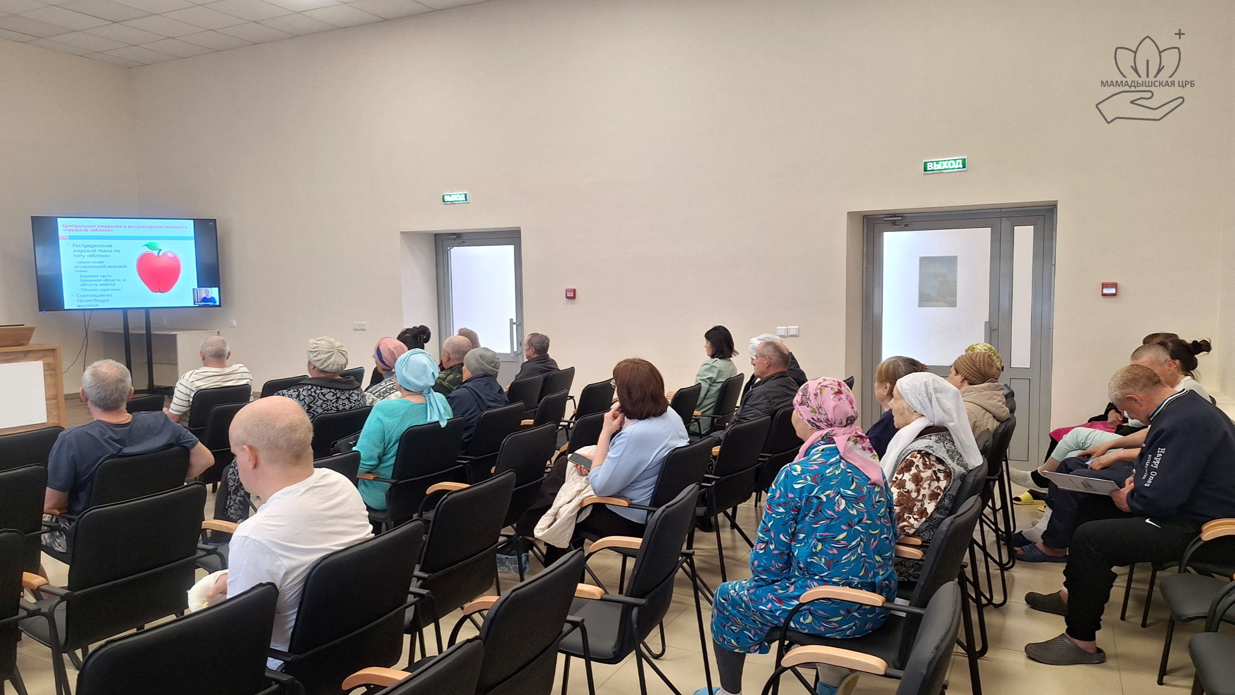 В актовом зале ГАУЗ «Мамадышская ЦРБ» прошло онлайн-занятие в рамках федерального проекта «Здоровье для каждого» (нацпроект «Продолжительная и активная жизнь»). 🏥